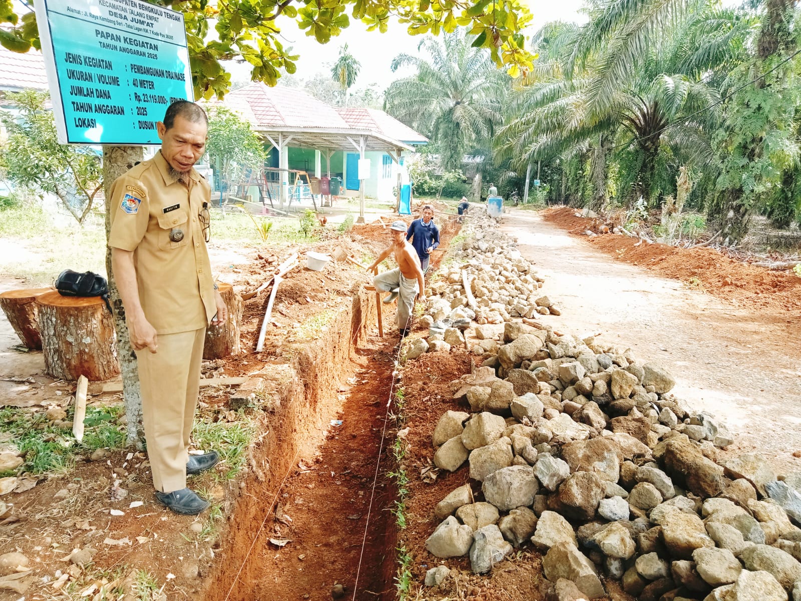Raki’in, Kepala Desa Jum’at Mengatakan bahwa Pembuatan Drainase adalah atas usulan warga pada musrembang di tahun 2024 lalu dan direalisasikan ditahap I tahun 2025 dari anggaran dana desa.