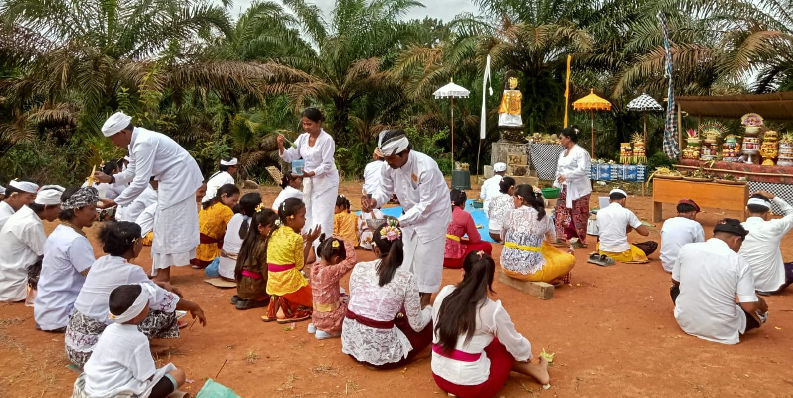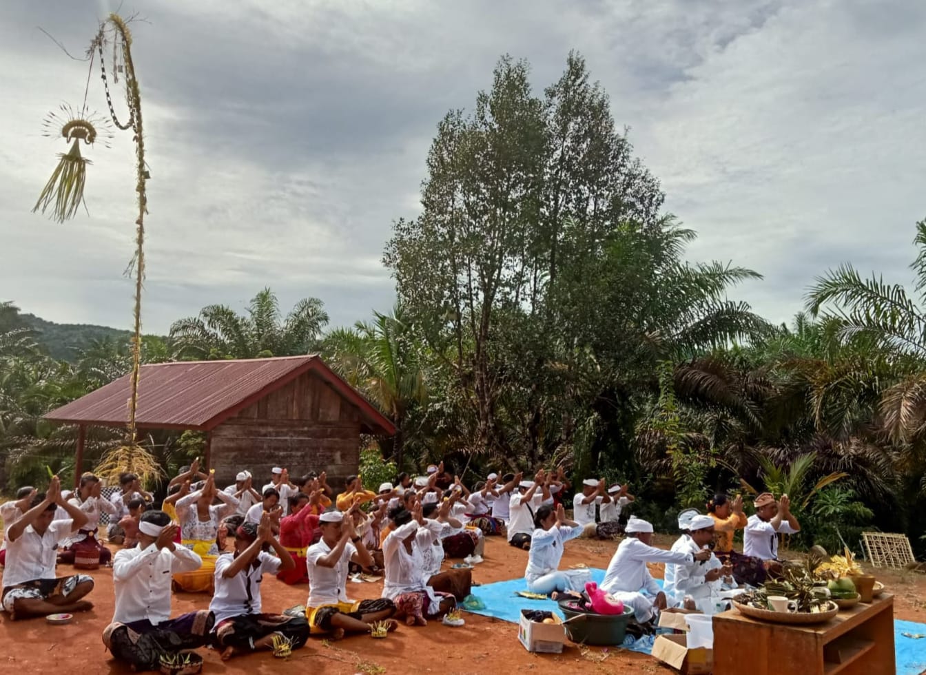 Dok//Istimewa : Gambar Pada Saat Warga Banyu Kencana, Kecamatan Ulu Talo, Menjalankan Upacara Pujawali. (Renaldi/pensiljurnalis).