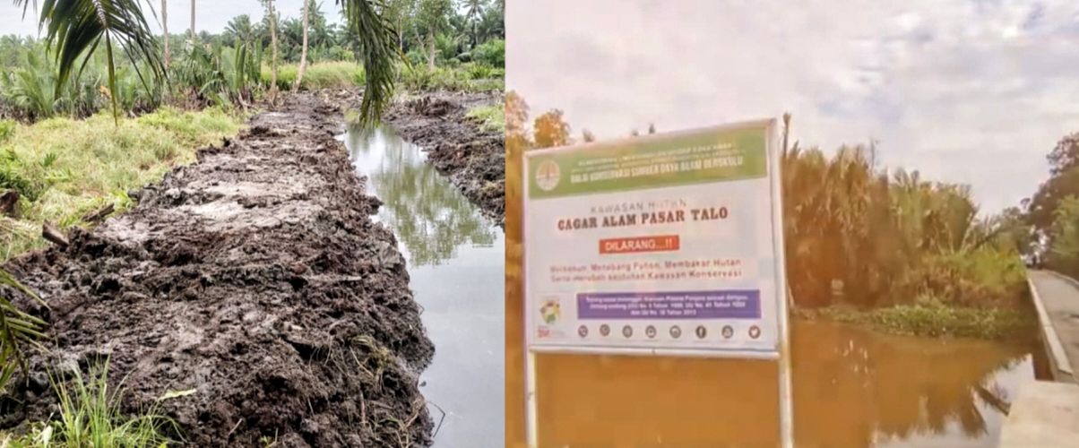 Tulisan larangan dan konsekuensi dari BKSDA apabila dilanggar tak sedikitpun menciutkan nyali oknum yang diduga menguasai lahan CA Pasar Talo, untuk membuka lahan perkebunan kelapa sawit, bahkan papan plang CA tersebut sudah hilang.