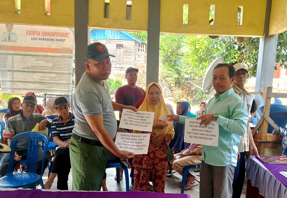 pensiljurnalis.my.id, Seluma – Pemerintah Desa Air Teras, Kecamatan Talo, Kabupaten Seluma, provinsi Bengkulu telah sukses melaksanakan penyaluran Bantuan Langsung Tunai Dana Desa (BLT DD) tahap 1 untuk tahun 2025. Pada kegiatan yang digelar Selasa (17/6/2025) itu, Sebanyak 37 Keluarga Penerima Manfaat (KPM) menerima bantuan bantuan tersebut.