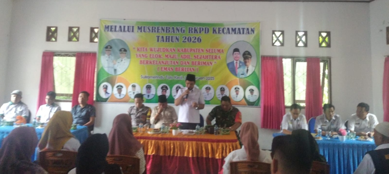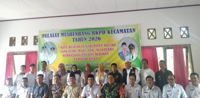 pensiljurnalis.my.id, Seluma – Bertempat di Aula Kantor Kecamatan, Camat Talo Kecil, Kabupaten Seluma, Provinsi Bengkulu, Kecamatan Talo Kecil gelar Musrenbang RKPD, bahan usulan rencana kegiatan Musyawarah Perencanaan Pembangunan (Musrembang) ditingkat Kabupaten. Jum’at (28/2/2025).