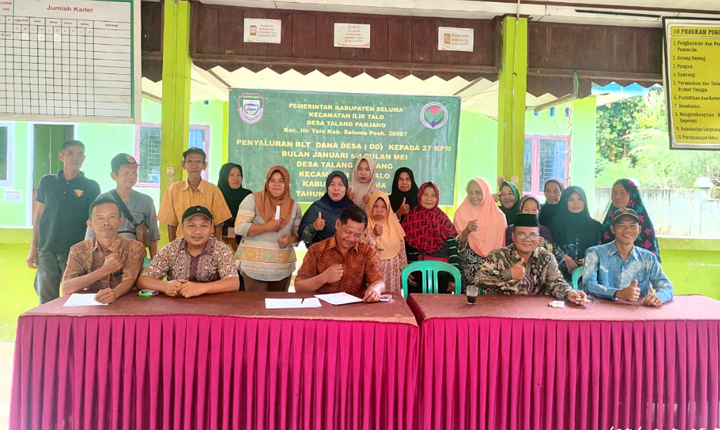 pensiljurnalis.my.id, Seluma – untuk membantu meringankan beban himpitan ekonomi dikalangan masyarakat bawah terus dilakukan, sesuai dengan regulasi dan Tahapan, Kamis (22/5/2025) Pemdes Talang Panjang, Kecamatan Ilir Talo, Kabupaten Seluma, menyalurkan Bantuan Langsung Tunai Dana Desa (BLT DD) tahun anggaran 2025.