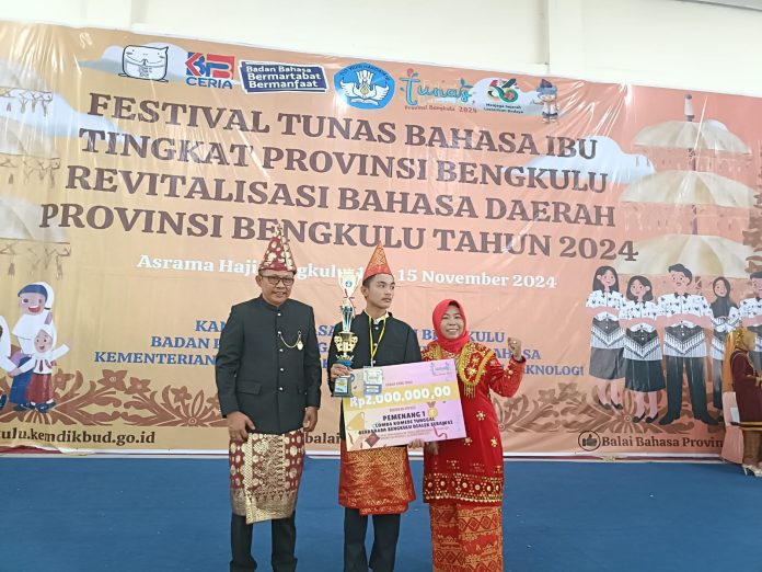 pensiljurnalis.my.id, Seluma – Kabar gembira datang dari SMPN 20 Seluma, Desa Kunduran, Seluma Timur, Kabupaten Seluma, Provinsi Bengkulu. Pasalnya salah satu peserta didik SMPN 20 Seluma, berhasil menyabet juara 1 lomba tingkat Provinsi Bengkulu yang diselenggarakan oleh Dinas Pendidikan Provinsi Bengkulu di Hotel Madina Wisma Haji kota Bengkulu. Sabtu (16/11/2024).