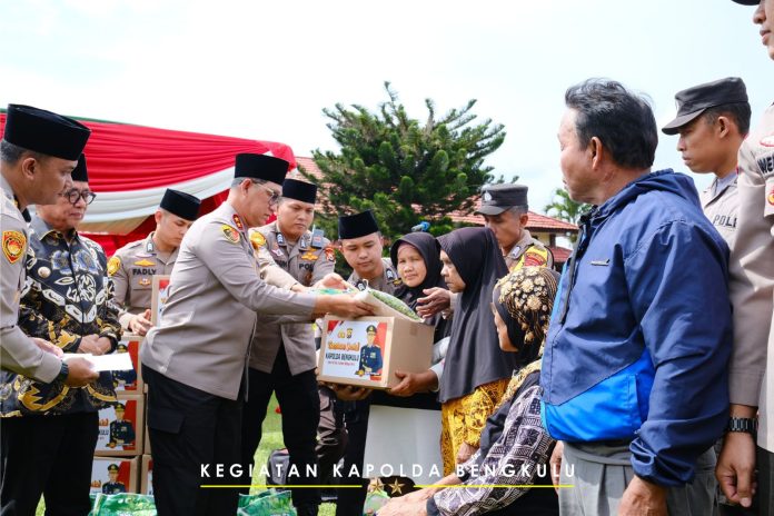 Kapolda beserta Pejabat Utama Polda Bengkulu tiba di lokasi yang dipenuhi antusiasme warga setempat. Dalam kegiatan tersebut, Kapolda Bengkulu Irjen Pol Drs. Armed Wijaya, MH, secara simbolis menyerahkan sembako kepada masyarakat yang membutuhkan.