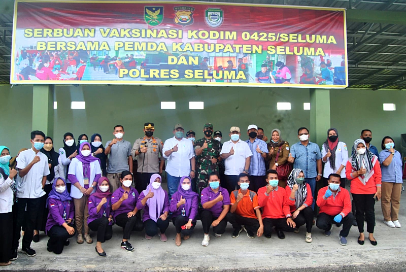 pensiljurnalis.my.id, Seluma – Herd Immunity, Dalam rangka mengentaskan program pemerintah memutus rantai penyebaran Covid-19 dan mengatasi keterpurukan ekonomi, diakhir bulan Februari 2022 Kodim 0425-Seluma bersama Pemda Seluma dan Polres Seluma, Senin ( 28/2/2022 ) sekira pukul 09:00 wib menggelar Puncak Vaksinasi massal di halaman Garasi kendaraan Makodim 0425-Seluma.