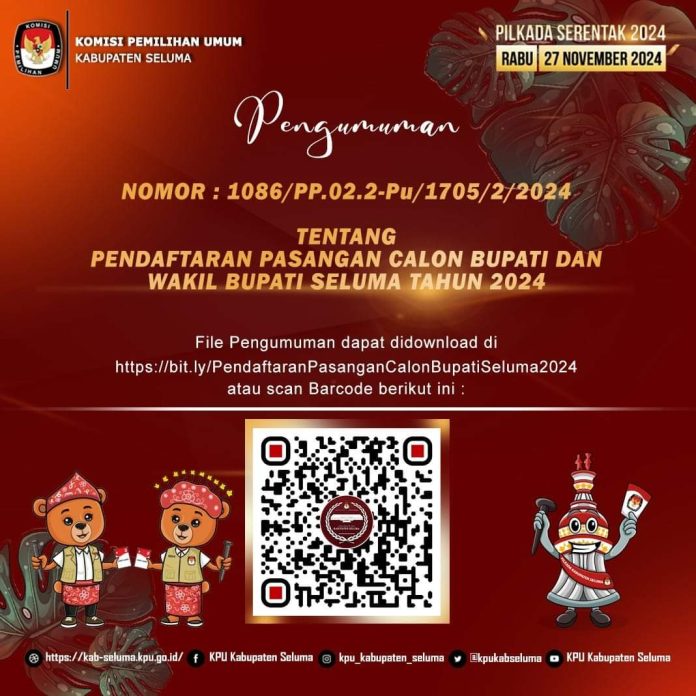 BerandaHeadlineKPU Seluma Umumkan Pembukaan Pendaftaran Paslon Cakada Seluma Tahun 2024 Silakan Klik... DaerahRapat Koordinasi, Anggota Plasma Ajukan Perubahan MOU Kepada PT MSSpensiljurnalis - 24 Oktober 20250Info DesaPemdes Dan BPD Desa Padang Batu Gelar Musdus Sekaligus Bagikan BLT DDpensiljurnalis - 21 Oktober 20250HeadlinePDA Aisyiyah Seluma Gelar Musypimda Tahun 2025 Serta Pelantikan pengurus IGABApensiljurnalis - 19 Oktober 20250DaerahPolres Kepahiang Gelar Upacara Deklarasi Dan Penandatanganan Fakta Integritas Bebas Dari Narkobapensiljurnalis - 17 Oktober 20250Info DesaPastikan Data Kesejahteraan Valid dan Akurat, Pemdes Napal Jungur Ikuti Bimtek SIKS-NGpensiljurnalis - 16 Oktober 20250 Headline KPU Seluma Umumkan Pembukaan Pendaftaran Paslon Cakada Seluma Tahun 2024 Silakan Klik Link Atau Scan Barcode By pensiljurnalis 24 Agustus 2024 0 Bagikan FacebookTwitterPinterestWhatsApp https://bit.ly/pendaftaranpasangancalonbupatiseluma2024 TagsKPU Kabupaten SelumaPengumuman Bagikan FacebookTwitterPinterestWhatsApp Artikulli paraprakDesa Rawasari Dapat Piagam Pencanangan Desa Cantik, Rumino: Semoga Bisa Menjadi Desa PercontohanArtikulli tjetërWarisan Budaya Anyaman Bakul Di Desa Nanti Agung, Juga Ada Bakul Mistis pensiljurnalishttps://pensiljurnalis.my.id RELATED ARTICLES Headline PDA Aisyiyah Seluma Gelar Musypimda Tahun 2025 Serta Pelantikan pengurus IGABA 19 Oktober 2025 Headline Pulang Dari Sawah, Warga Desa Simpang Terseret Banjir Saat Nyebrang Sungai 14 Oktober 2025 Daerah ‎MUI, Alasan Datang Bulan Oknum ASN Kepahiang Pelaku Penistaan Agama Batal Shalat Taubat 14 Oktober 2025 TINGGALKAN KOMENTAR Komentar: Silakan masukkan komentar anda! Nama:* Silakan masukkan nama Anda di sini Email:* Anda telah memasukkan alamat email yang salah! Silakan masukkan alamat email Anda di sini Website: Simpan nama, email, dan situs web saya di browser ini untuk lain kali saya berkomentar. - Advertisment - - Advertisment - - Advertisment - - Advertisment - - Advertisment - - Advertisment - - Advertisment - - Advertisment - - Advertisment - - Advertisment - - Advertisment - - Advertisment - Most Popular Rapat Koordinasi, Anggota Plasma Ajukan Perubahan MOU Kepada PT MSS 24 Oktober 2025 Pemdes Dan BPD Desa Padang Batu Gelar Musdus Sekaligus Bagikan BLT DD 21 Oktober 2025 PDA Aisyiyah Seluma Gelar Musypimda Tahun 2025 Serta Pelantikan pengurus IGABA 19 Oktober 2025 Polres Kepahiang Gelar Upacara Deklarasi Dan Penandatanganan Fakta Integritas Bebas Dari Narkoba 17 Oktober 2025 Muat lebih banyak Recent Comments pensiljurnalis pada Tersembunyi, Sekolah Di Kabupaten Seluma Punya Tenaga Honorer Capai 79 Orang