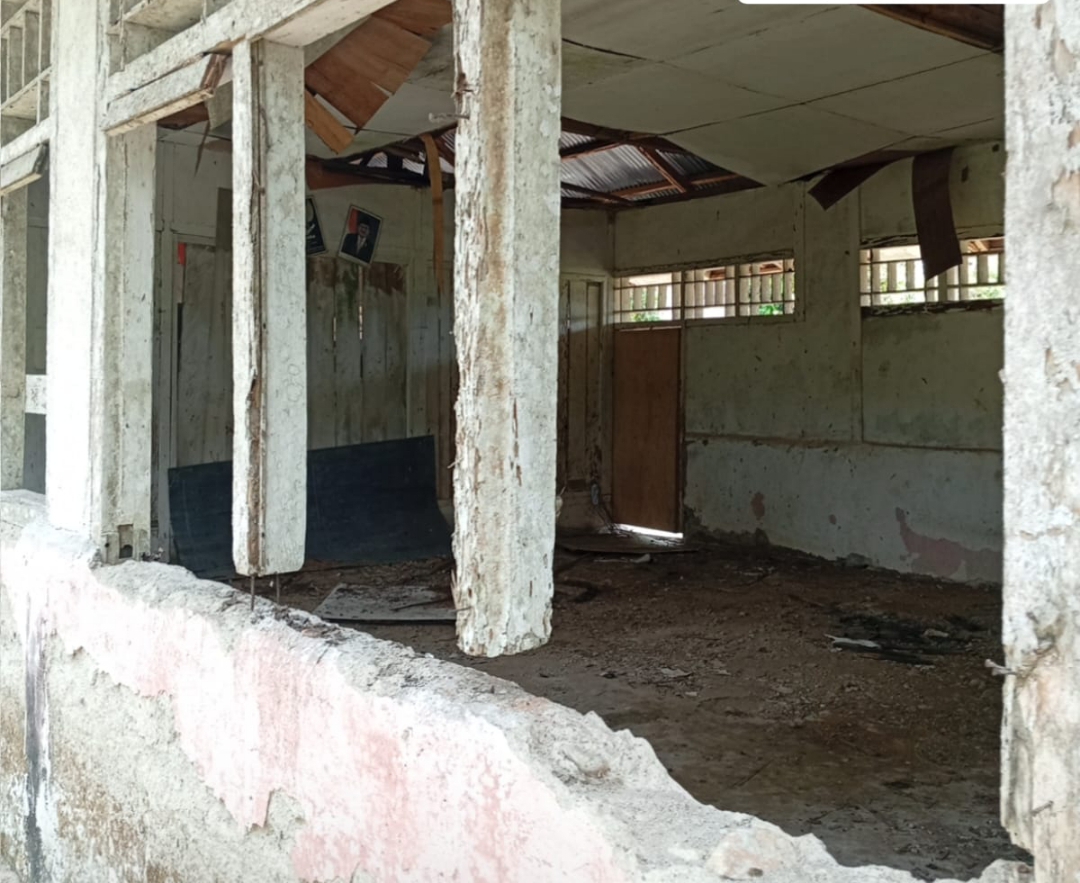 “Sekarang ruang belajar sudah tidak layak pakai, kami memiliki 3 lokal ruang kelas namun 2 lokal sudah tak layak pakai. Namun sebelum dibangun pemerintah kami terpaksa menggunakan ruang kelas seadanya untuk belajar” jelasnya.