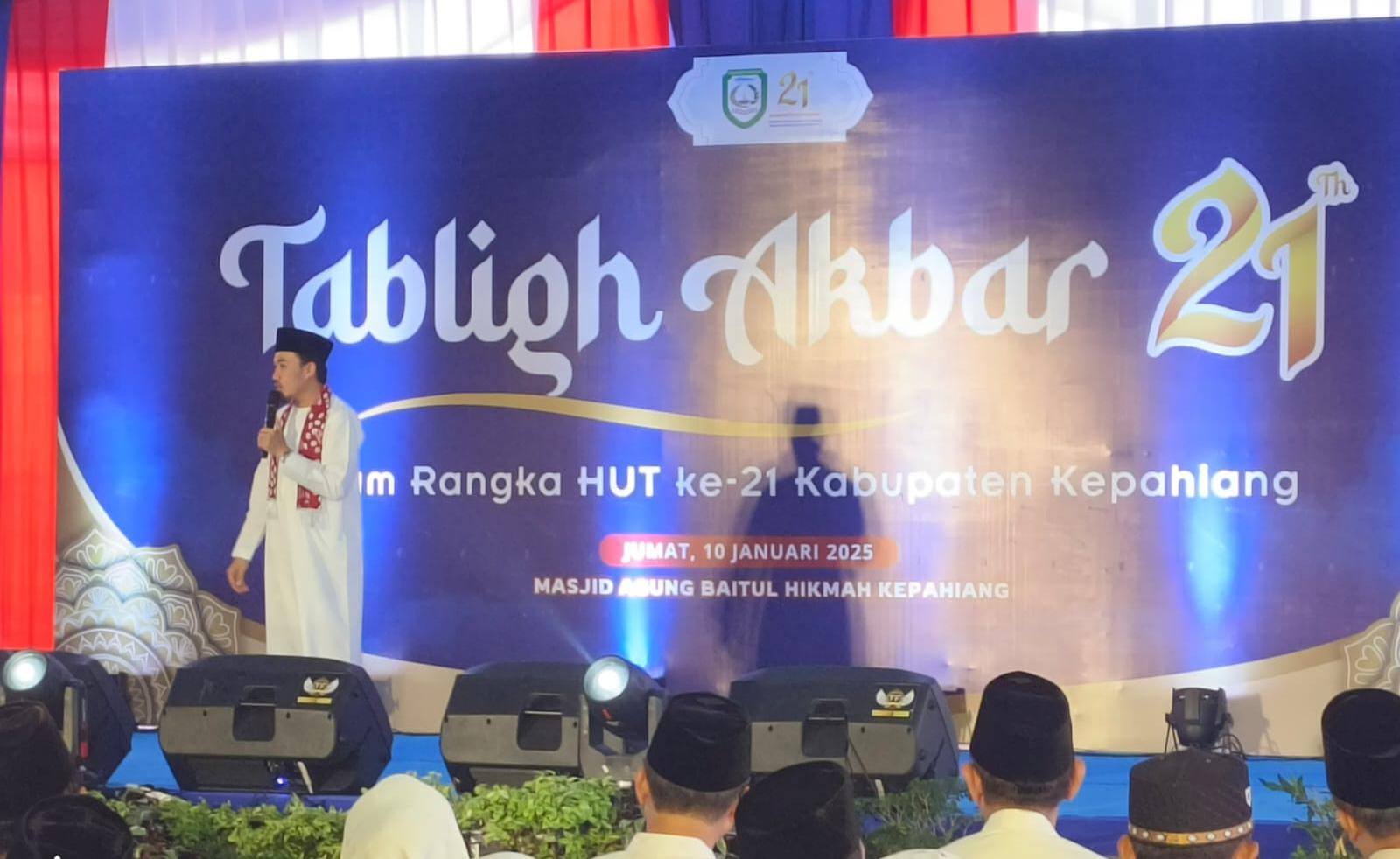 pensiljurnalis.my.id, Kepahiang – Meriahkan Hari Ulang Tahun (HUT) ke 21 Kabupaten Kepahiang, Pemerintah Kabupaten Kepahiang, Provinsi Bengkulu kedatangan Ustadz Syam Elmarusi M.A.G, acara ini berlangsung di aula masjid agung Baitul Hikmah Kepahiang rangkaian acara di mulai jam 13:30, WIB sampai selesai. Jum’at (10/1/2025).