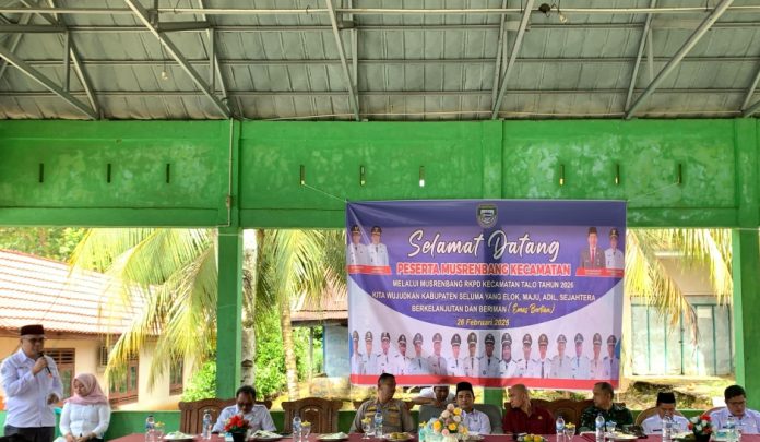 pensiljurnalis.my.id, Seluma – Sebagai bahan untuk usulan rencana kegiatan Musyawarah Perencanaan Pembangunan (Musrembang) ditingkat Kabupaten, bertempat di aula kantor kecamatan, hari ini Kamis (27/2/2025) pagi, Kecamatan Talo, menggelar Musrenbang tahun 2025.
