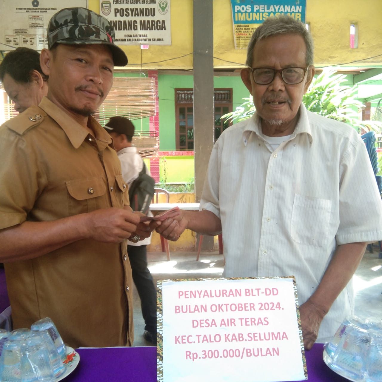 Untuk diketahui, pada penyaluran BLT-DD Desa Air Teras, Tersebut, selain dihadiri Sekdes, BPD, Perangkat Desa, juga dihadiri langsung oleh Hermen Jayadi, Kepala Desa Air Teras.