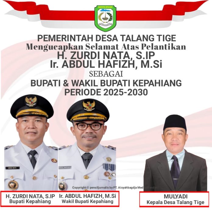 Pemerintah Desa Talang Tige, Selamat Atas Dilantiknya Bupati Dan Wakil Bupati Kepahiang Periode 2025-2030
