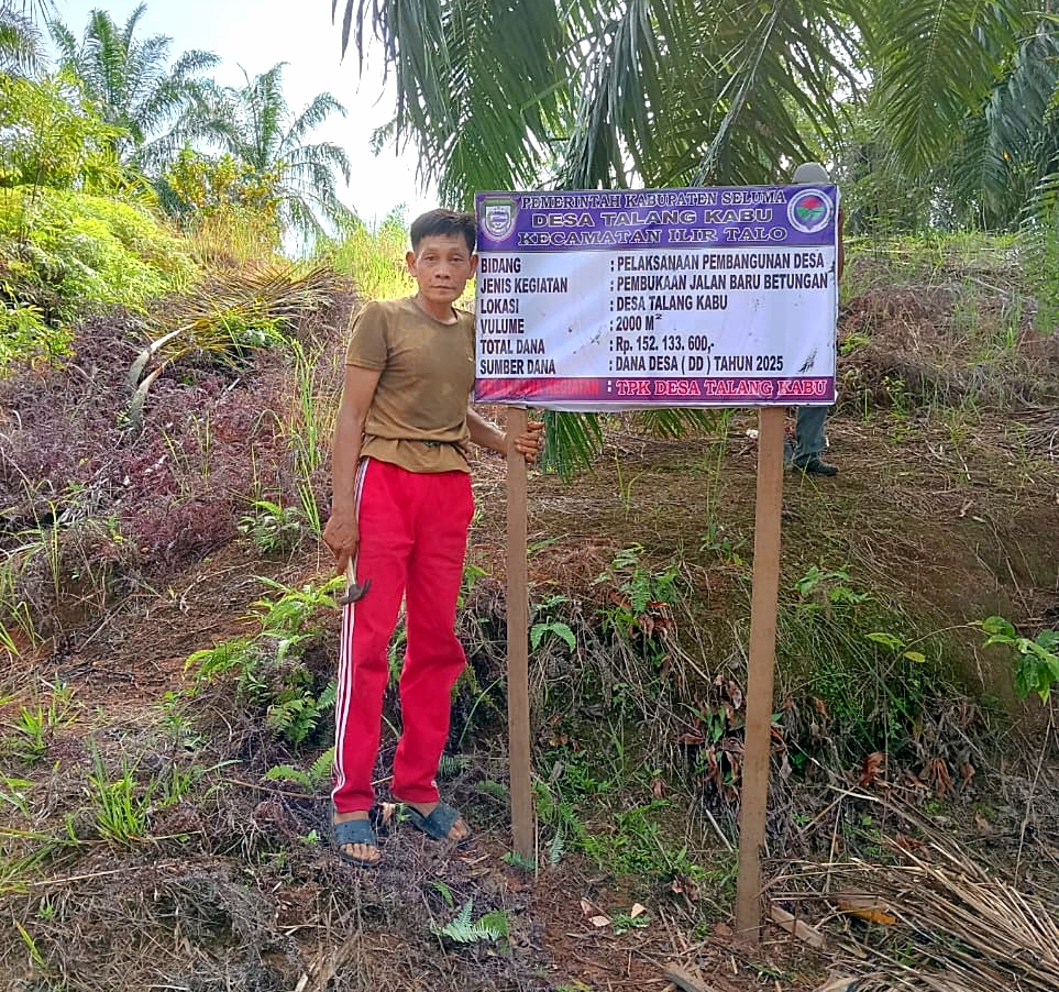 pensiljurnalis.my.id, Seluma – Pemerintah Desa (Pemdes) Talang Kabu, Kecamatan Seluma Ilir Talo, Kabupaten Seluma, Provinsi Bengkulu sampai saat ini terus berupaya untuk meningkatkan infrastruktur yang dapat mensejahterakan serta mempermudah akses warganya dalam berusaha. Salah satunya melakukan Pembukaan badan jalan baru sentral produksi.