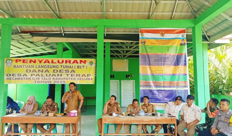 Untuk diketahui pada penyaluran BLT DD yang digelar di balai desa setempat itu, dihadiri oleh Kepala Paluwah Terap Rozi Syahroni, Sekdes Juvventus, Camat Ilir Talo Zaiyadi Abdillah beserta Tim, pendamping desa Rudi Hartono dan Yudian Saputra SH , Babinsa, Bhabinkamtibmas, Ketua dan anggota Badan Permusyawaratan Desa (BPD), serta segenap perangkat desa, dan penerima manfaat BLT DD.