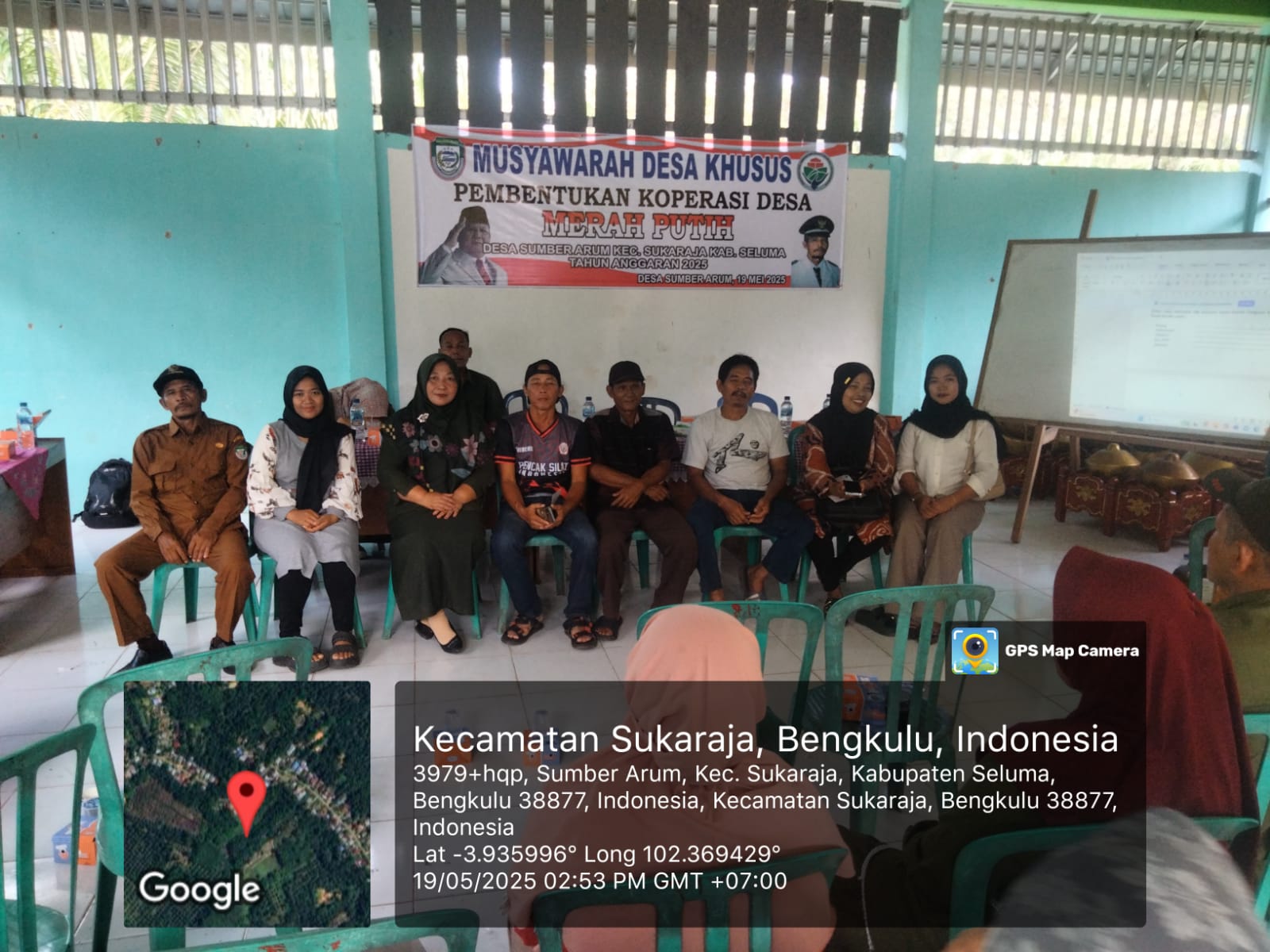 pensiljurnalis.my.id, Seluma – Dalam langkah konkret untuk memperkuat ekonomi kerakyatan di tingkat desa, sesuai petunjuk Pemerintah Pusat, Senin (19/5) Pemerintah Desa (Pemdes) Sumber Arum, Kecamatan Sukaraja, Kabupaten Seluma, Provinsi Bengkulu, menggelar Musyawarah Desa Khusus (Musdesus) pembentukan koperasi merah.