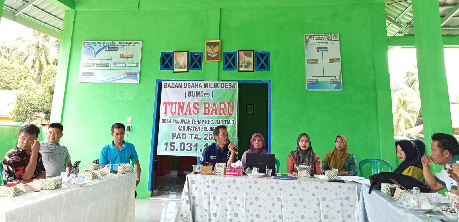 Pemerintah Desa (Pemdes) Paluwah Terap, Kecamatan Ilir Talo, Kabupaten Seluma, Provinsi Bengkulu, bersama beberapa unsur penting dan masyarakat, Kamis (26/12) menggelar Musyawarah Desa (Musdes) dengan tema “Laporan Tutup Buku Bumdes Tunas Baru”. Jum’at (27/12/2024).