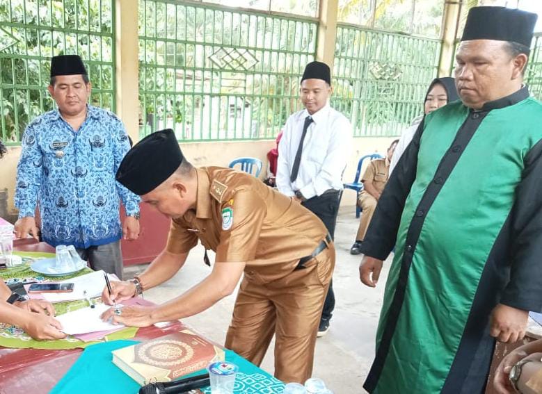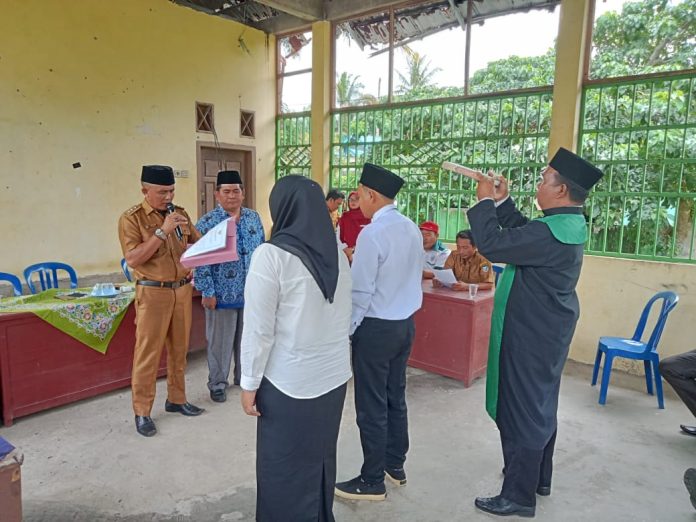 Didalam kata sambutan sebelum pelantikan, Arpandi, selaku Kepala Desa, mengucapkan selamat kepada Sekdes dan Perangkat Desa (red,Kasih Pemerintahan) yang lolos seleksi.